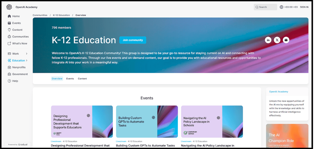 OpenAI Academy provides comprehensive professional development resources designed specifically for educational practitioners. The platform offers self-paced training modules that accommodate the demanding schedules of working educators.
